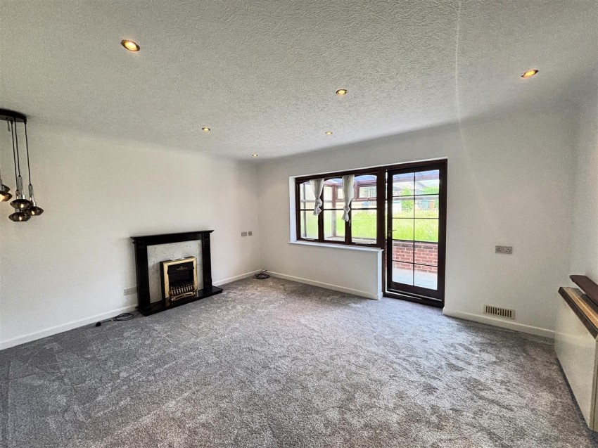 A really good sized living room with access into the rear facing conservatory, newly fitted neutral carpet, UPVC double glazed window and door to conservatory, electric storage heater, electric fire set in modern fireplace, spotlights to ceiling.